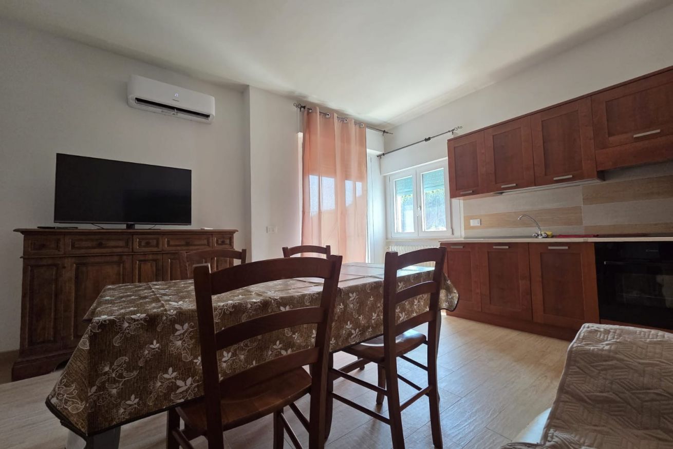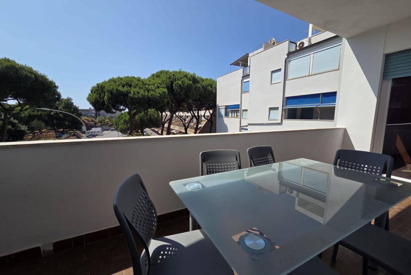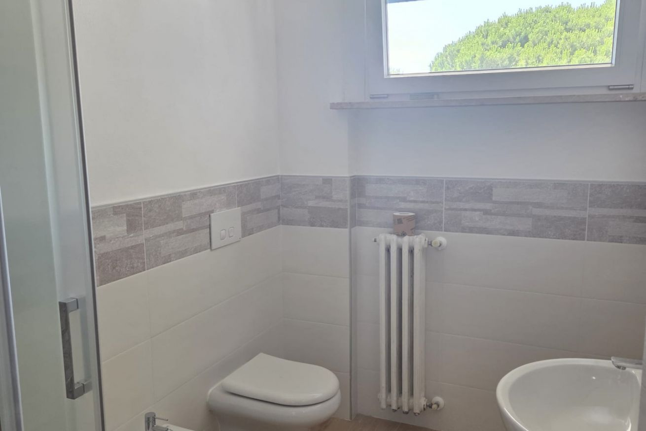 Il nostro appartamento di 55 mq si trova al primo piano di una palazzina signorile ed è cosi composto: area soggiorno con divano letto matrimoniale e zona tv, zona pranzo attrezzata con tavolo e sedie, cucina completa di tutti i comfort, adiacente alla nostra area soggiorno troviamo una porta finestra che porta sul nostro terrazzo con vista sulla pineta attrezzata di tavolo e sedie.