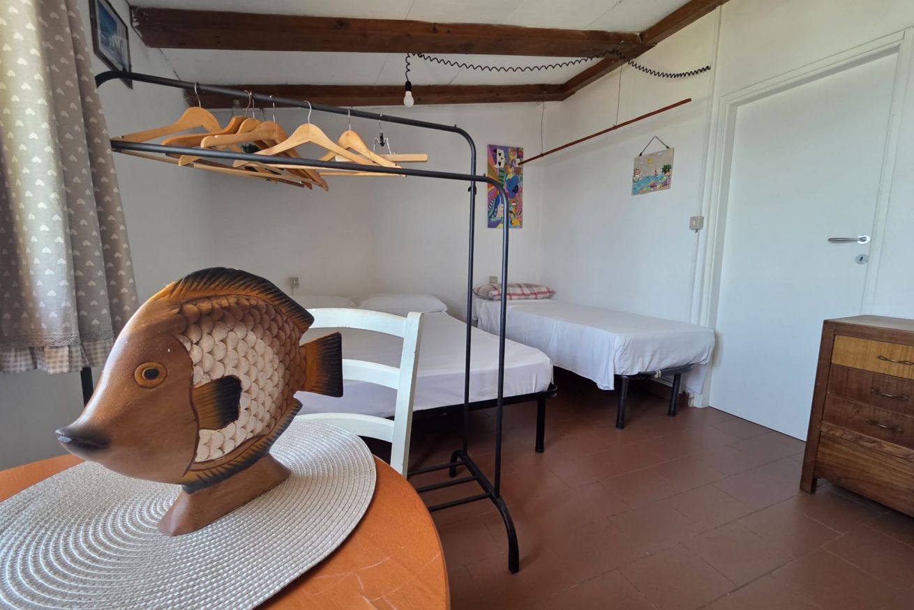 La nostra 'Baracchina sul Mare' di 45 mq è cosi composta: ingresso indipendente con piccolo patio esterno attrezzato di tavolo e sedie, per raggiungere la vostra abitazione bisogna salire tramite una scala a chioccia interna che ci collega direttamente alla nostra area soggiorno con zona tv, zona pranzo con tavolo e sedie, angolo cottura completo di tutti comfort, adiacente la zona pranzo troviamo il bagno completo e finestrato con vista mare con doccia a filo pavimento segue poi una ampia camera da letto per 6 posti con finestra vista mare, doppio letto matrimoniale king e doppio letto singolo.
