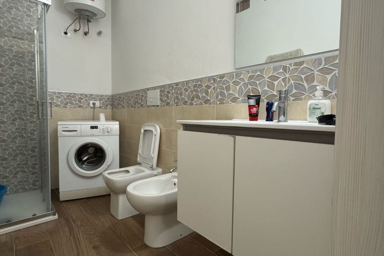 L'appartamento è dotato di: ingresso indipendente, balcone privato, wifi, aria condizionata, riscaldamento, tv a schermo piatto, macchinetta del caffè, forno elettrico, armadio, cassettiera, tende oscuranti, pavimento in gres porcellanato e lavatrice.
